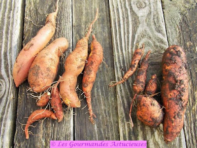 Nous avons récolté nos patates douces dans le jardin :