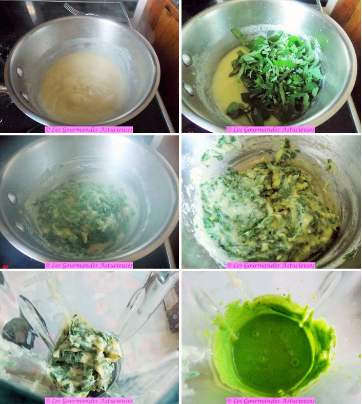 Fouettez jusqu'à épaississement. Eteignez le feu et ajoutez les feuilles de capucine émincées (pour qu'elles conservent toutes leurs saveurs) avec 1 pincée de sel. Mélangez et laissez refroidir quelques minutes. Puis, mixez la sauce au blender. Elle est bien verte.