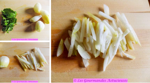 Lavez et émincez l'ail, la bourrache et les fanes de radis.